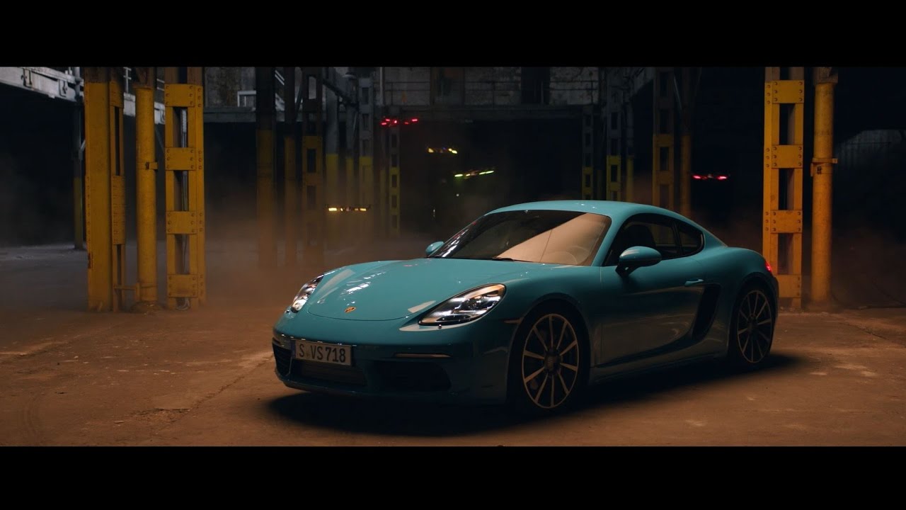 Seis drones caçadores de alta velocidade perseguem o novo Porsche 718 Cayman nas docas