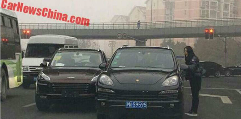 A CarNewsChina apresentou uma foto de um insólito acidente em que o clone chinês do Porsche Macan, o Zotye SR9, se viu envolvido num sinistro com um verdadeiro SUV da marca germânica, neste caso um Cayenne. O caso ocorreu em Shangai e apesar de aparentemente não ter causado grandes danos em qualquer um dos automóveis, é caso para dizer que se o proprietário do Zotye de cor vermelha estivesse ao volante de um verdadeiro Macan poderia ter evitado esta situação, já que o modelo alemão conta com o sistema de travagem de emergência em cidade que lhe permite evitar acidentes como este. O caso é ainda mais curioso uma vez que o Zotye era um carro praticamente acabado de sair do concessionário, já que apresentava as placas de matrícula temporárias com que os automóveis circulam inicialmente no território chinês.