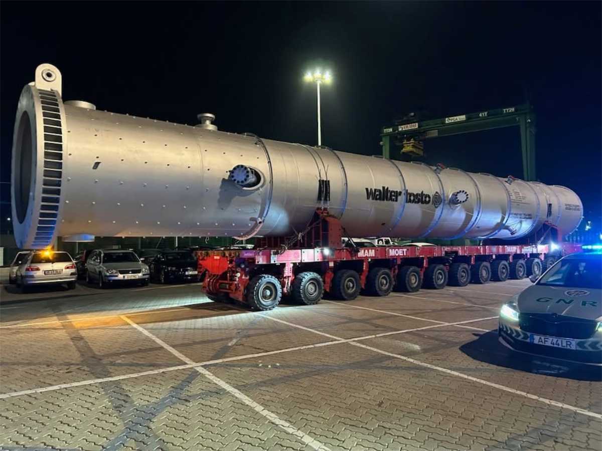 Com um peso combinado superior a 500 toneladas, os três reatores em aço maciço, produzidos em Itália, foram transportados do terminal de contentores do Porto de Sines para a Refinaria da Galp através de um sistema de módulos motorizados que, no caso do maior dos três reatores, o VO-R-1B, era constituído por 18 eixos e 72 rodas. Este equipamento irá seguir um trajeto mais longo do que os restantes uma vez que a sua dimensão – 30 metros com um peso de 250 toneladas – impede a sua passagem por baixo dos viadutos existentes no percurso mais curto.