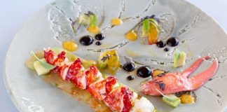 Receita de salada de lavagante com abacate, tomate verde e beterraba