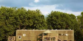 Carruagem de comboio militar agora é um pequeno hotel no campo