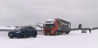 Veja um Tesla rebocar um camião de 40 toneladas na neve