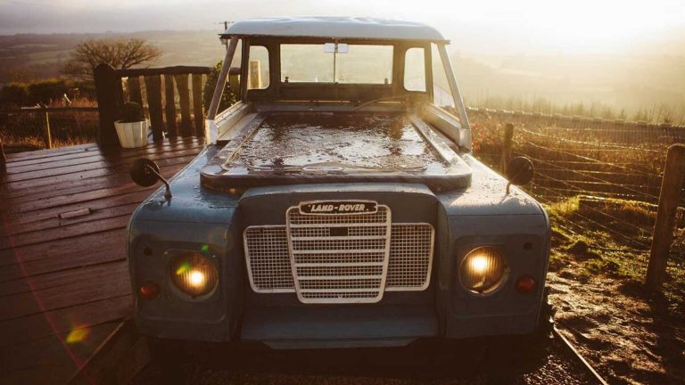 Land Rover transformado num jacuzzi em alojamento rural