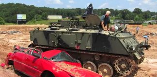 A derradeira experiência anti-stress: esmagar carros com um tanque!