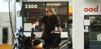 Ícone. Brad Pitt conduz a moto mais cara do mundo