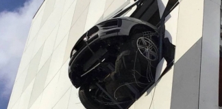 O que faz um Porsche Macan pendurado à janela de um...