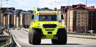Ambulância russa de oito rodas para salvamentos impossíveis