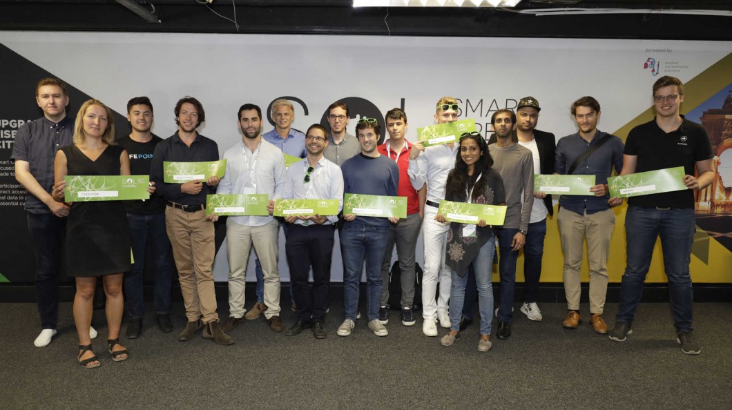 Os representantes das 14 startups que irão desenvolver projetos-piloto na área da mobilidade em Lisboa.