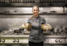 A jovem chef Lúcia Freitas dá as boas-vindas à entrada do restaurante A Tafona, enquanto retira dos cestos os pães que serão servidos noite...