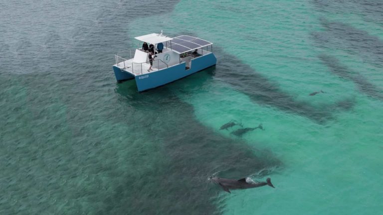 Barco a energia solar passeia com os golfinhos sem fazer poluição