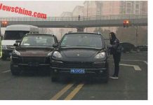 Foi captada uma foto que mostra um Zotye SR9, a famosa cópia chinesa do Porsche Macan, envolvido num acidente com um Porsche Cayenne.