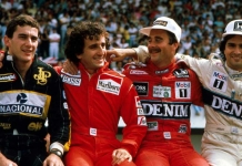 GP de Portugal, 1986. Bernie Ecclestone, na altura chefe de equipa da Brabham, teve a ideia de reunir os quatro carismáticos pilotos – Ayrton...