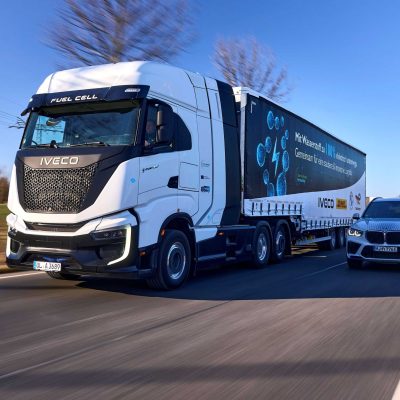 A IVECO entregou dois camiões pesados IVECO S-eWay Fuel Cell à BMW, um parceiro no projeto H2Haul.   Este projeto europeu, cofinanciado pela Clean Hydrogen