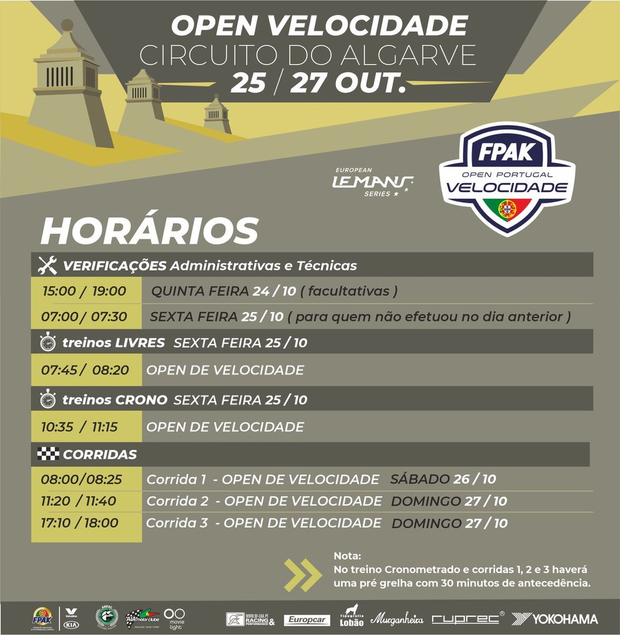 Como é habitual, o programa do Open de Velocidade no AIA terá duas corridas de Sprint, com 25 minutos de duração (uma no sábado e outra no domingo), e uma corrida em formato de Endurance, com 50 minutos, no domingo (horário em anexo).