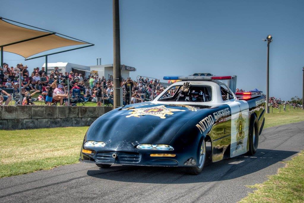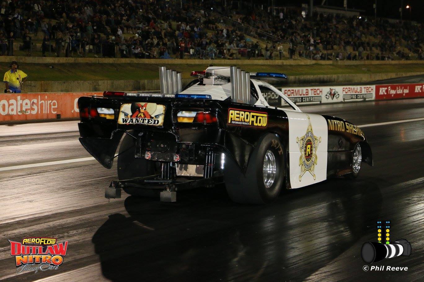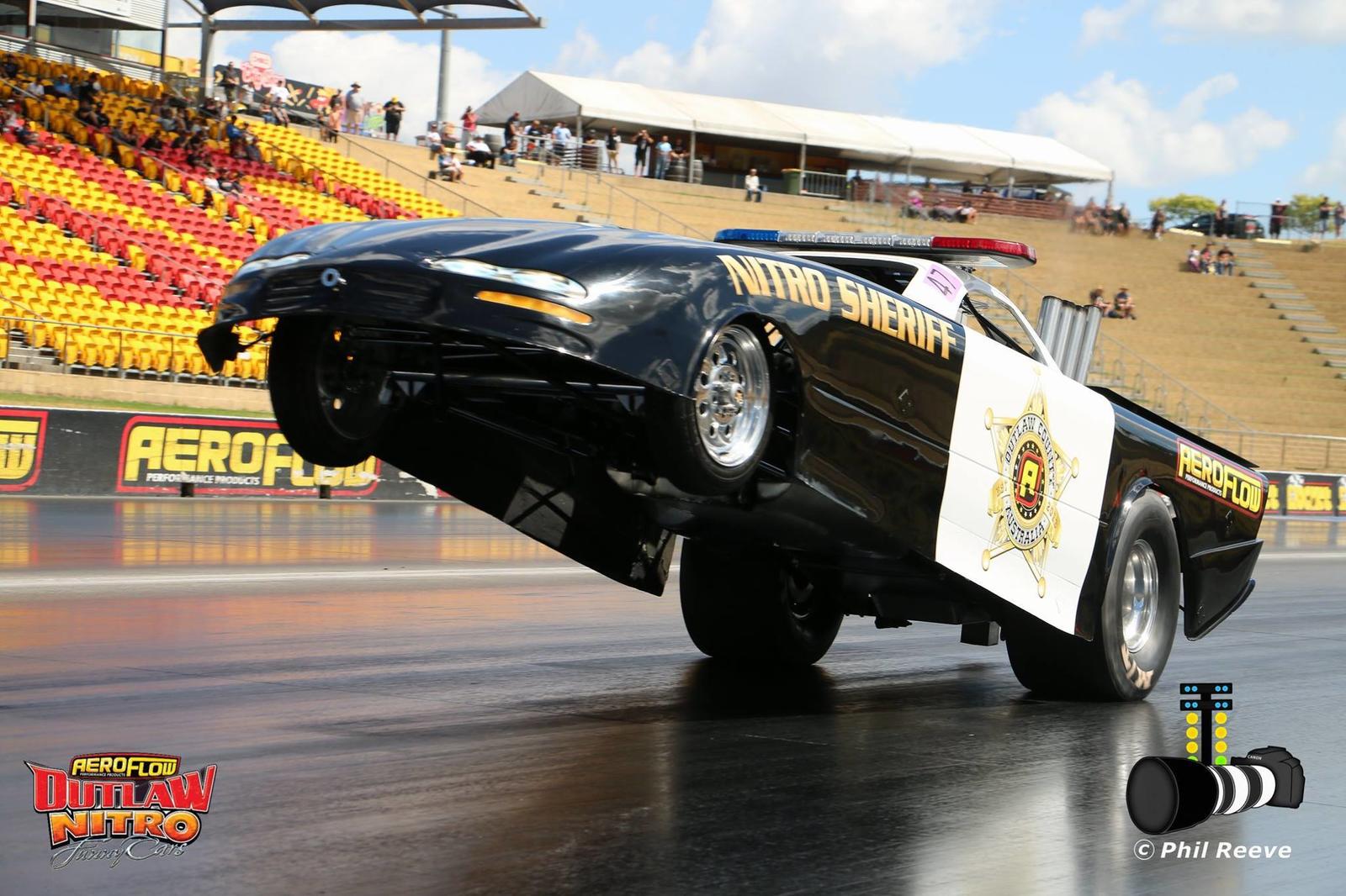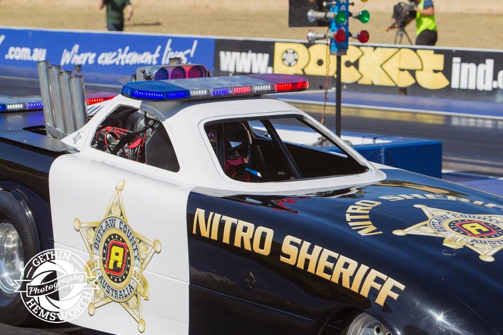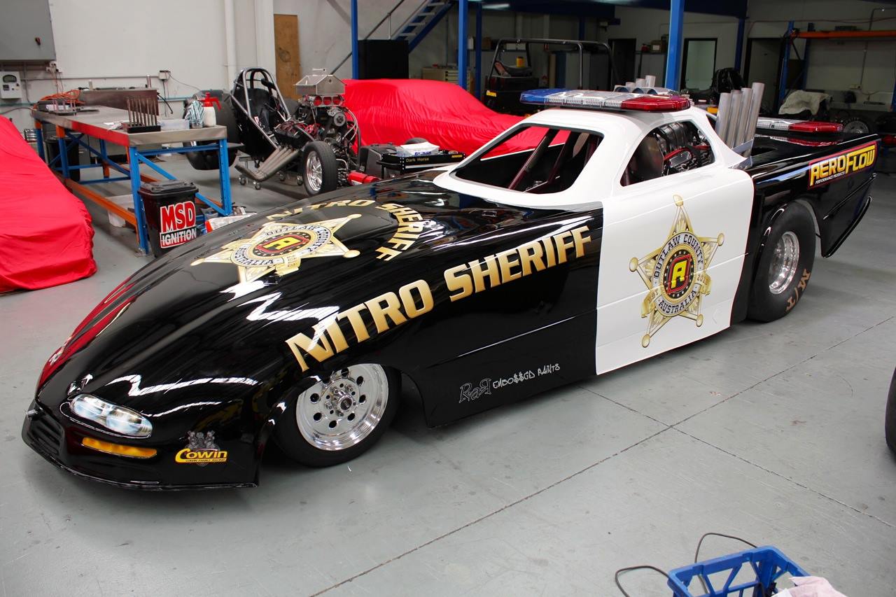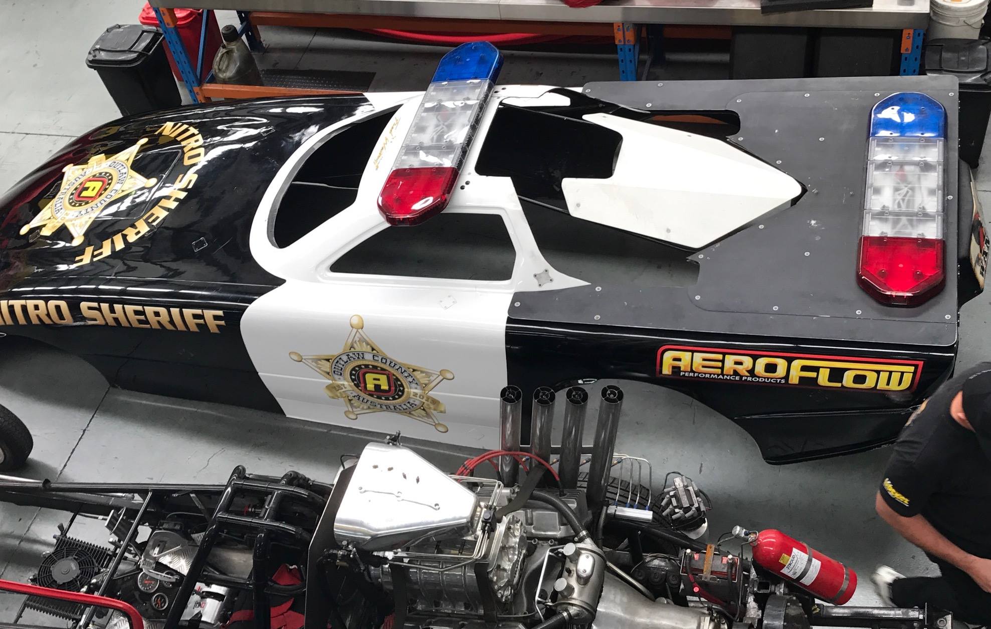 Com uma carroçaria baseada no Pontiac Trans-Am, o Nitro Sheriff usa um motor Mopar Hemi V8 sobrealimentado, com 8400 cc de cilindrada, para um peso de 1020 kg. Os pneus traseiros têm uma dimensão de 34,5 por 17 polegadas.