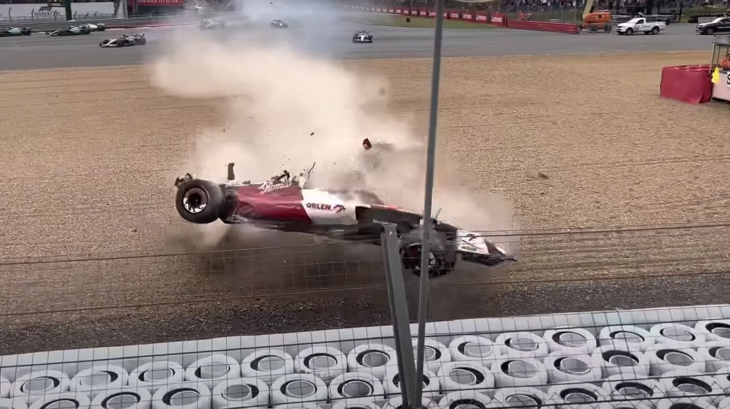 Já na corrida de Fórmula 1, a primeira partida ficou marcada pelo acidente violento de Zhou, com o piloto chinês a ver o seu Alfa Romeo capotar e, com a estrutura de proteção superior do piloto a ceder, fazer várias dezenas de metros com o seu capacete rente ao asfalto, sobrevoando ainda a zona de gravilha da escapatória antes de se imobilizar por detrás de uma barreira de pneus e ‘entalado’ entre essa e a rede de proteção das bancadas.