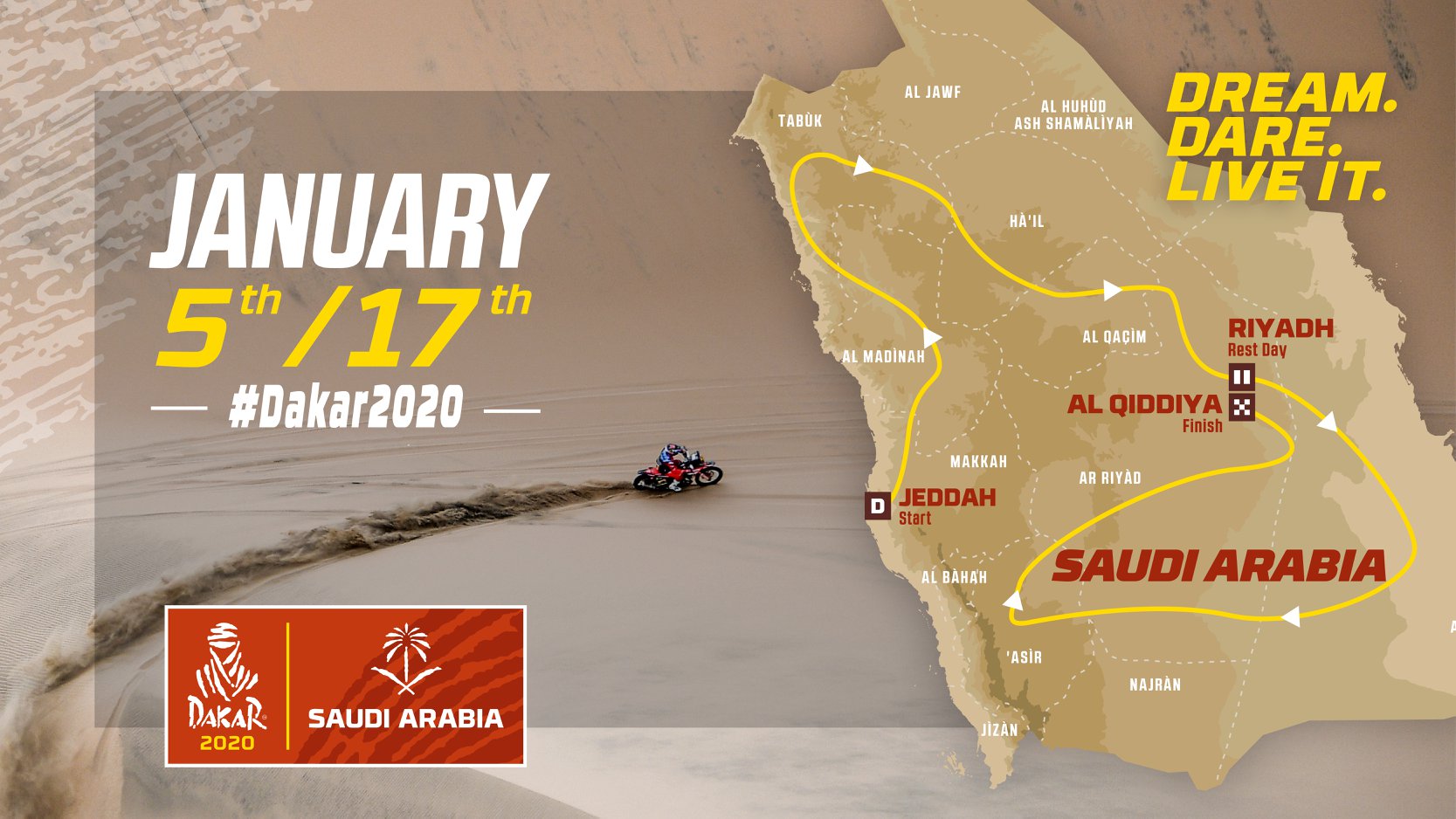 O arranque para o Dakar inaugural no Médio Oriente será dado a 5 de janeiro na cidade de Jidá, para um total de 12 etapas (e um dia de descanso, a 11 de janeiro) para um total de 9000 quilómetros de prova. O final está marcado para 17 de janeiro em Qiddiyah, megaprojeto turístico construído de raiz na cidade de Riade e que estará concluído a tempo da prova.