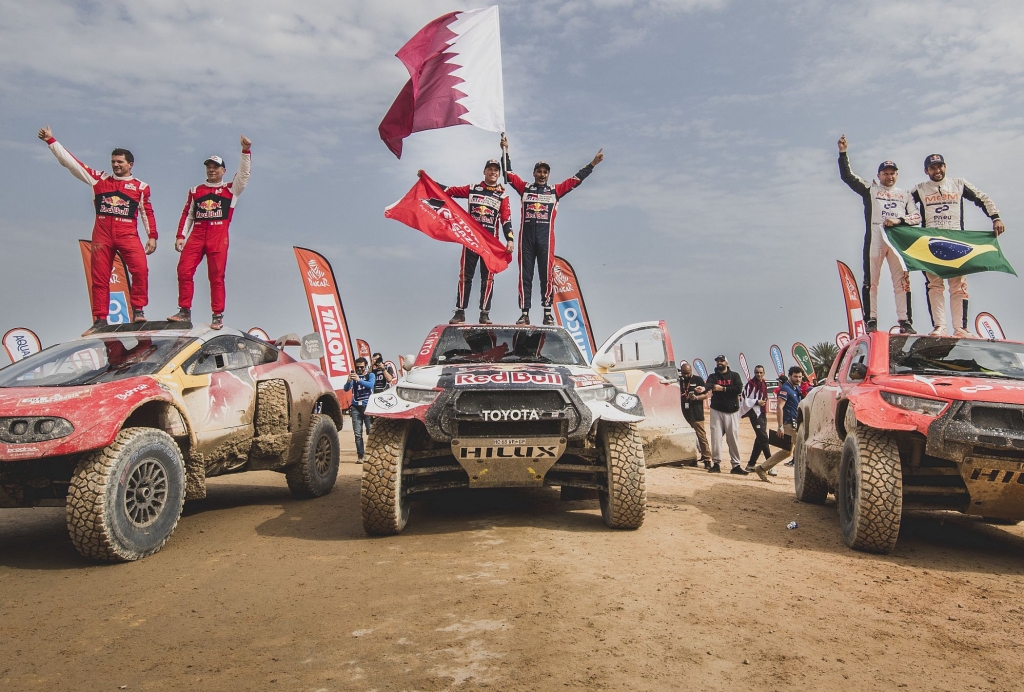 Com o navegador Mathieu Baumel ao seu lado na Hilux, o piloto do Catar chegou ao comando da prova na terceira etapa e não mais largou essa posição, vendo os seus principais rivais ‘caírem’ um a um devido a diferentes tipos de problemas. O seu maior adversário acabou por ser o francês Sébastien Loeb (Bahrain Raid Extreme), atrasado severamente logo na segunda etapa após uma quantidade enorme de furos nos pneus do seu carro terem levado à perda de mais de uma hora.