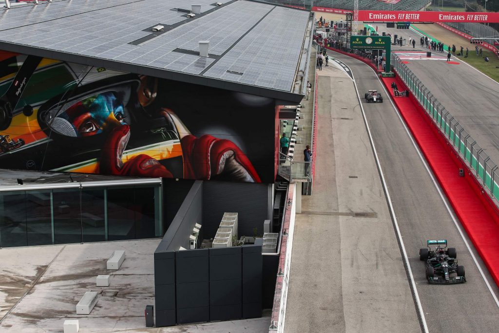 A luta pelo triunfo no GP de Emilia Romana no histórico circuito de Imola voltou a ter como protagonistas os dois Mercedes-AMG, com Valtteri Bottas a liderar na parte inicial da prova, fazendo um ótimo arraque a partir da pole position, enquanto Hamilton caiu para o terceiro posto atrás de Max Verstappen (Red Bull). O holandês foi também um dos animadores da prova, mas após as paragens nas boxes ficou claro que dificilmente teria andamento para triunfar.
