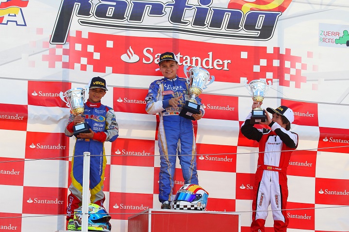 Após a partida, Malheiro manteve-se nos primeiros lugares e na última volta ultrapassou o espanhol Aaron García (FA), vencendo por escassos 0,075s. Na Corrida 2, o luso-espanhol teve problemas no kart e não completou qualquer volta.