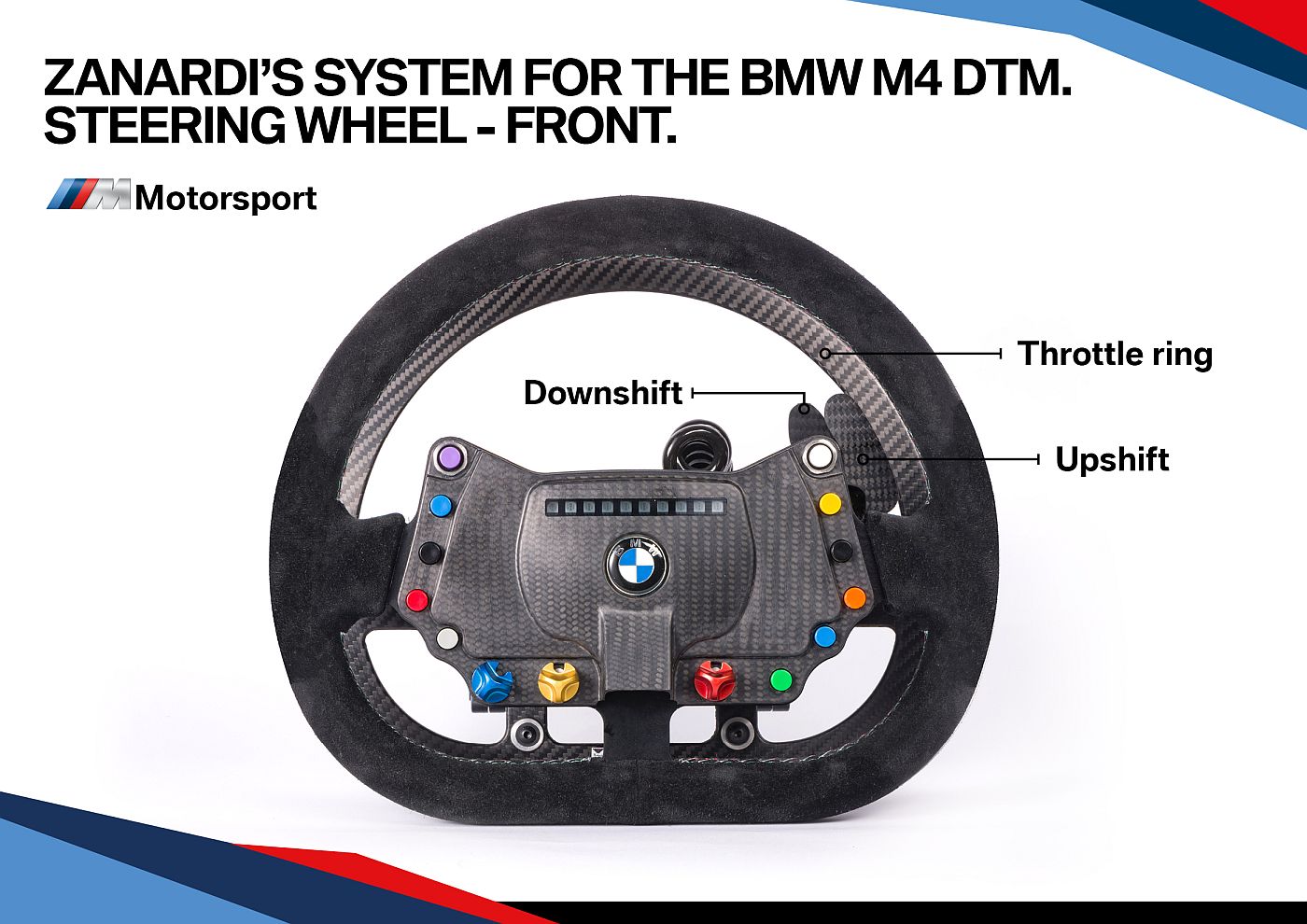 O volante, porém, adota outras novidades, como por exemplo o anel-acelerador, um anel situado atrás do volante e que o acompanha no seu diâmetro, podendo ser acionado com as duas mãos ou apenas com uma delas – a esquerda ou a direita. Utiliza os mesmos sensores que são necessários para controlar o acelerador de pé normal. Existe ainda alguma trabalho de adaptação deste volante, que foi o mesmo que Zanardi utilizou noutras provas com a BMW, contando no entanto com um botão de DRS para a corrida do DTM.