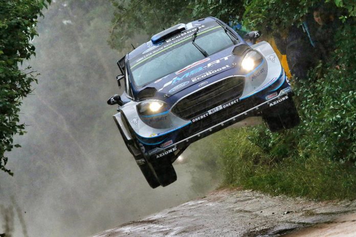 Jari Matti Latvala e Ott Tanak foram os vencedores dos dois primeiros troços do dia, mas o conjunto de resultados determinou novo líder, com o estónio da M-Sport a trocar novamente de posição com Neuville, que dista agora 3.5s do seu adversário. Outro facto relevante destes dois troços matinais tem a ver com a saída de estrada de Sébastien Ogier, que o fez perder cerca de trinta segundos e cair para o quinto posto da geral, agora a 1m10.9s de Tanak. Curiosamente também o estónio teve uma ligeira saída, mas para um campo, não batendo em nada, mas confessando que teve muita sorte em não bater em nada. Os troços continuam muito escorregadios e por isso não foi de estranhar que também Andreas Mikkelsen voltasse a sair, e a exemplo de Tanak, também o fez para um campo. Desta feita não conseguiu curvar, o carro seguiu em frente, mas agora teve mais sorte. Neste momento, Latvala passa a estar a 7.2s da frente e Neuville está a 3.5s de Tanak, que lidera.