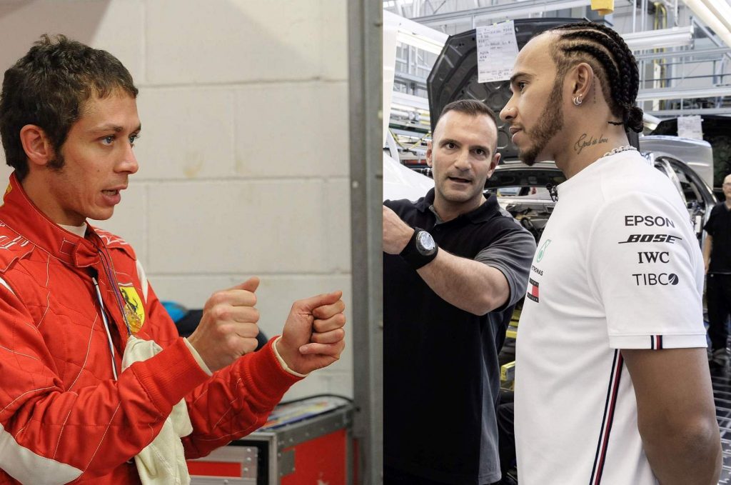 Valentino Rossi e Lewis Hamilton poderão vir a trocar de máquinas dentro em breve, com o italiano a poder testar o Mercedes-AMG de Fórmula 1 e o britânico a Yamaha M1 de MotoGP numa ação promocional que estará a ser organizada pelos patrocinadores de ambos.