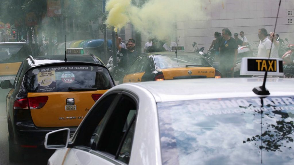 Os taxistas da capital catalã saíram à rua em protestos violentos contra as plataformas, que só retomam atividade quando “voltar a normalidade”.