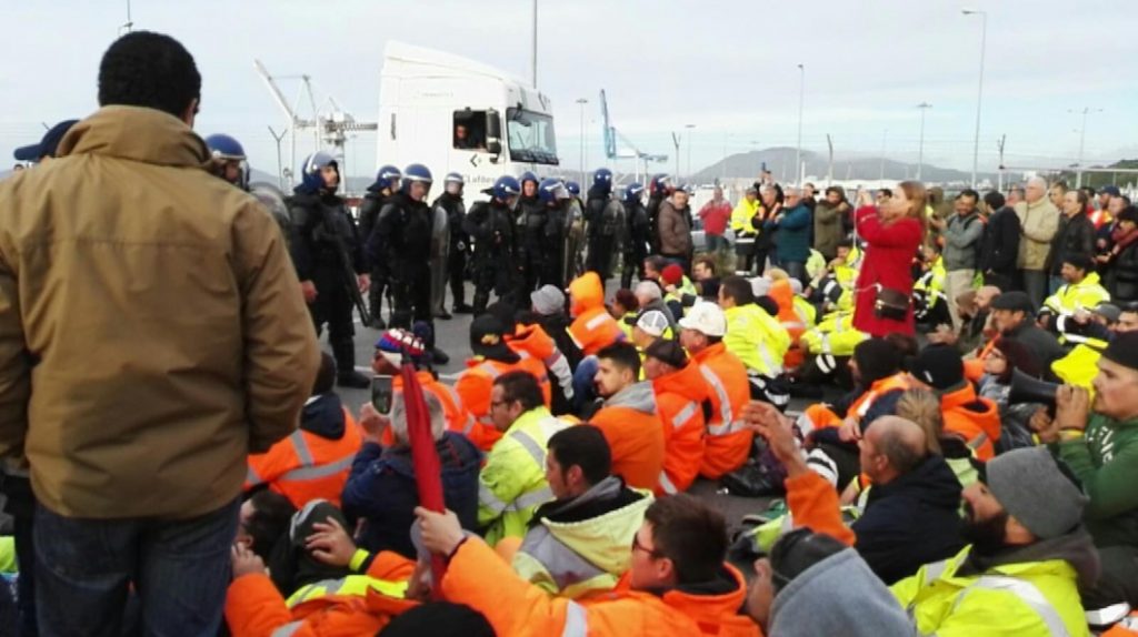 Um a um, polícia de choque retira estivadores em protesto no Porto de Setúbal