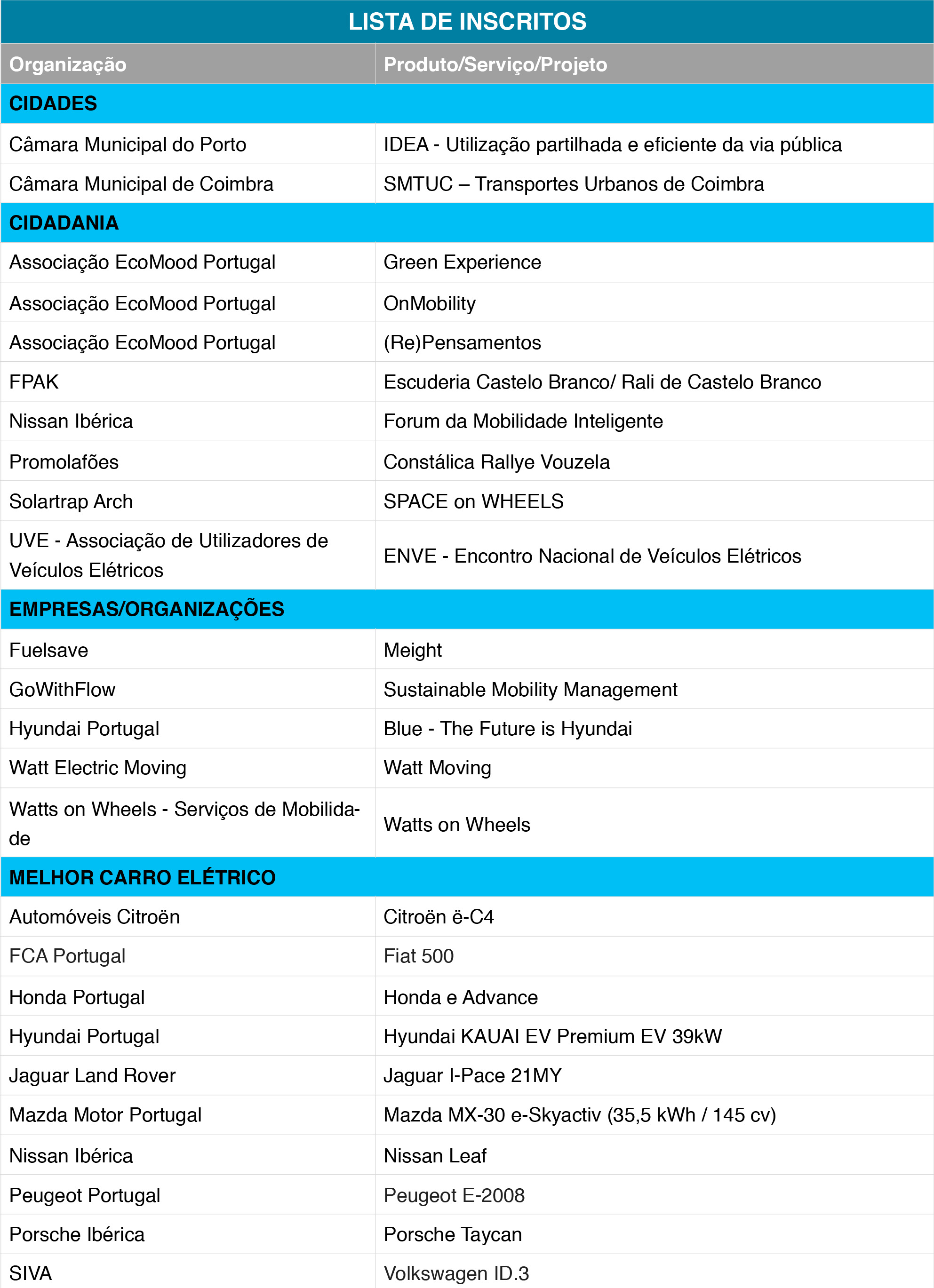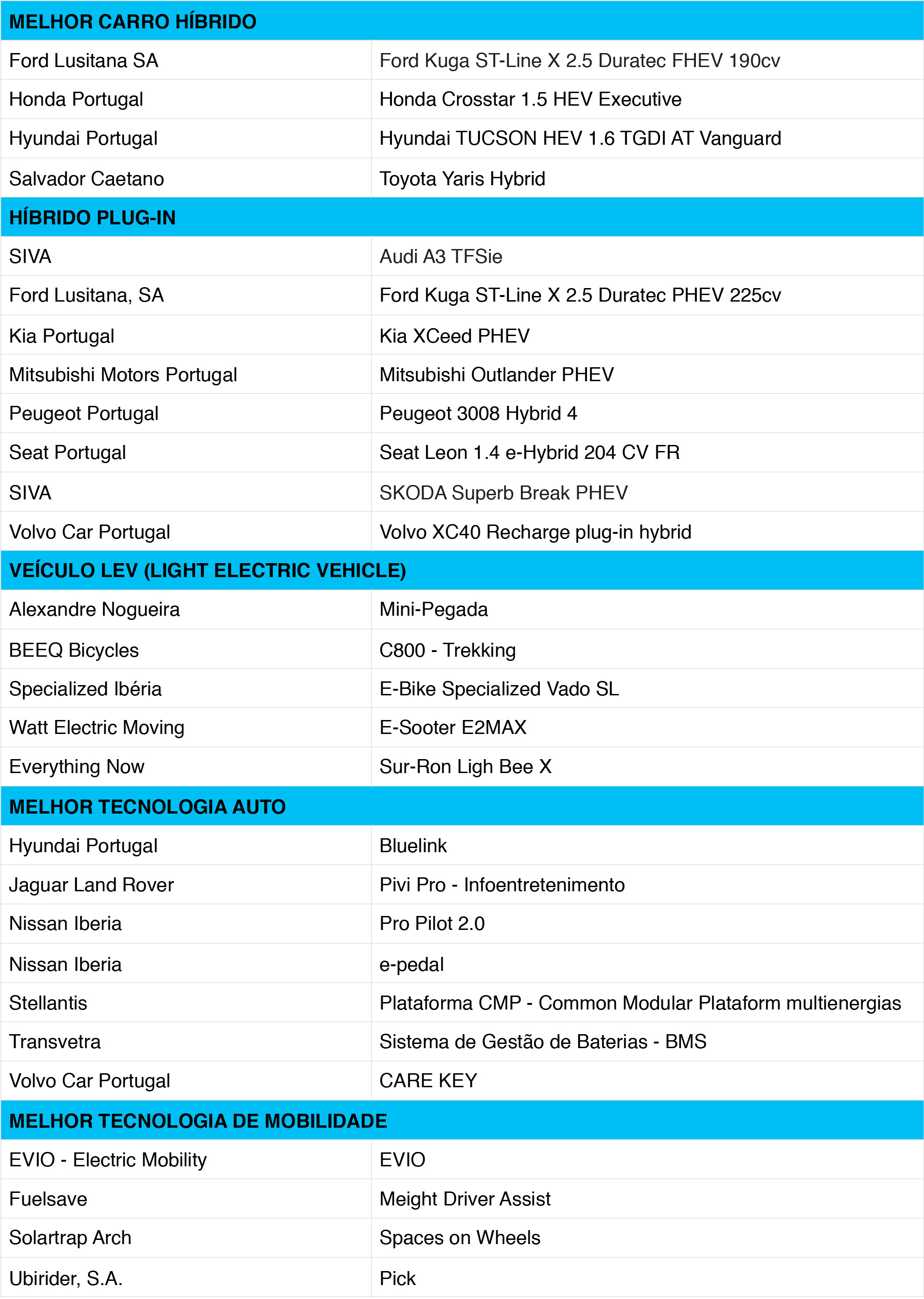 A sessão de testes decorreu em Lisboa e permitiu ao júri fazer uma última avaliação aos 25 veículos a concurso nas categorias de Melhor Elétrico, Melhor Híbrido, Melhor Híbrido Plug-In e Melhor Veículo LEV. Características como inovação, alcance elétrico, rapidez e facilidade de carregamento, prestações, consumos, conforto e preço serão aquilatadas para encontrar a proposta mais homogénea em cada categoria e a que melhor traduz um avanço para a eletrificação da mobilidade.