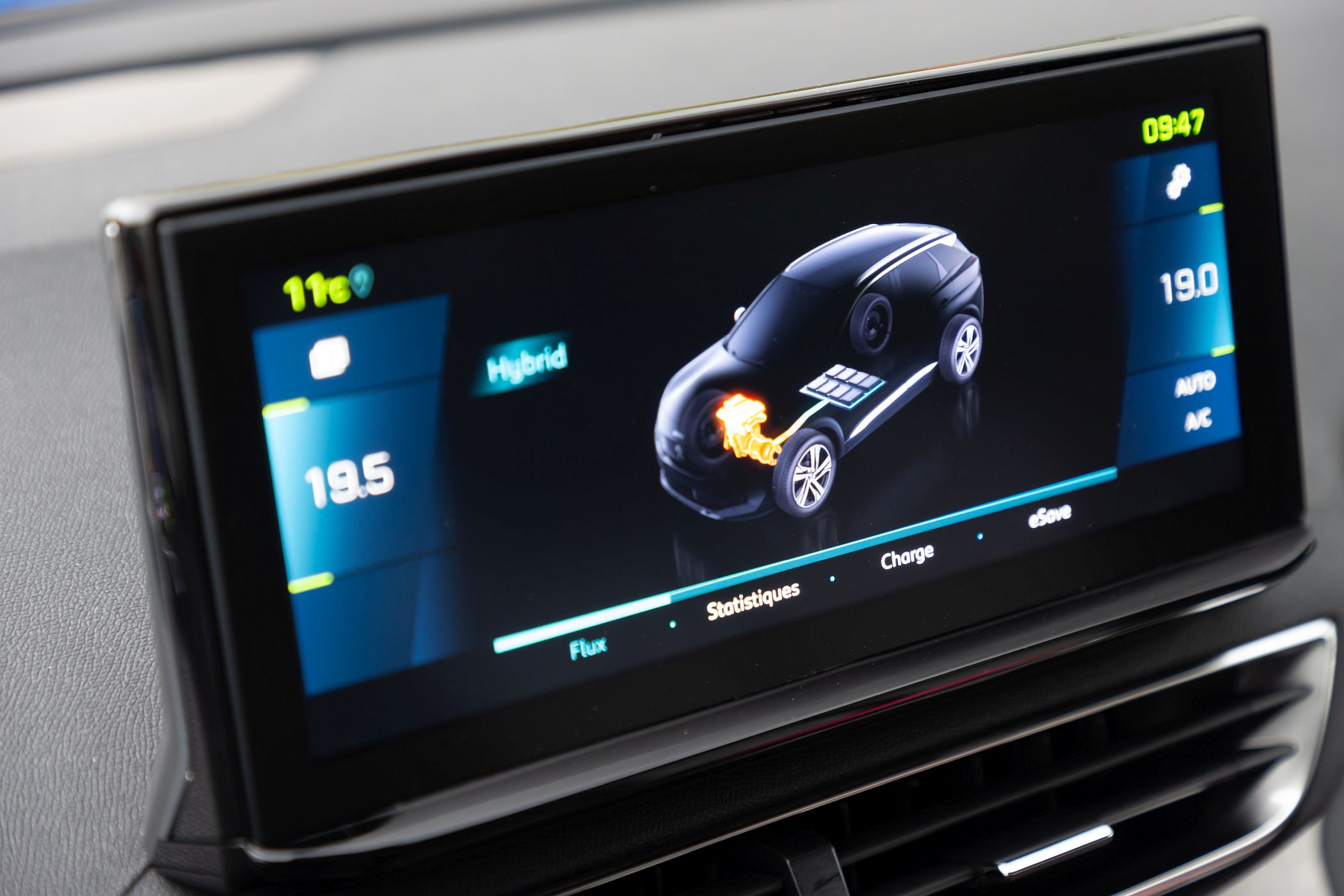 Além disso, a evolução do sistema i-Cockpit acrescenta ainda maior funcionalidade e valor (em ecrã de 12.3 polegadas), algo que se pode complementar com um ecrã tátil de 10 polegadas, uma novidade neste modelo, com renovação ligeira do sistema de infoentretenimento. No caso da unidade ensaiada, tratando-se de um híbridos, conta com um botão dedicado para acesso aos menus do sistema eletrificado, permitindo ver o funcionamento do sistema em tempo real ou acionar o modo ‘e-Save’, que permite guardar uma quantidade de carga na bateria elétrica para uso posterior.