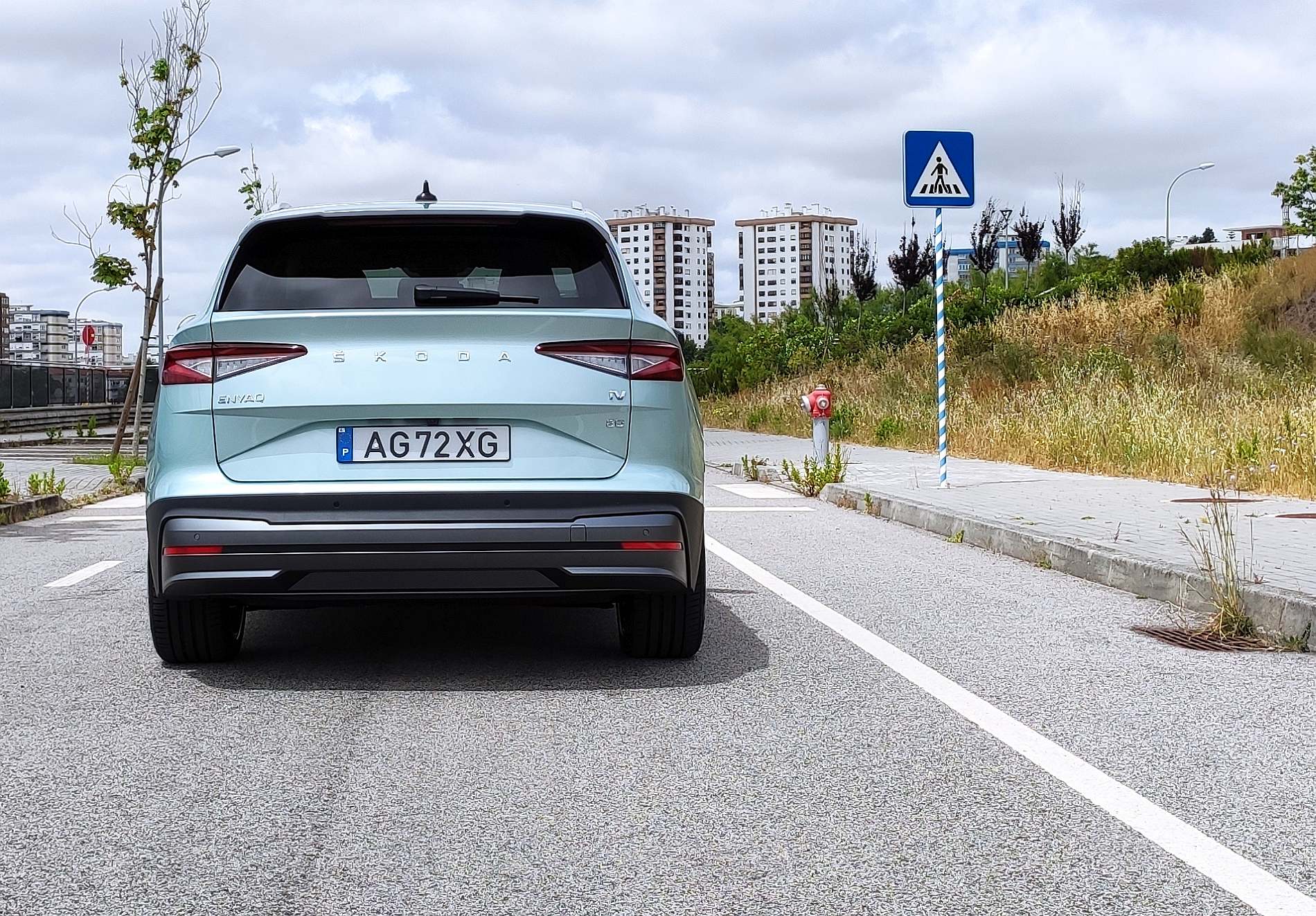 Como acontece em outros modelos da marca, o Enyaq iV está disponível com seleção do modo de condução. São seis modos (Eco, Eco+, Conforto, Normal, Desportivo e Individual) que o utilizador pode usar não só para controlar a resposta do veículo ao acelerador, mas também o binário disponível, a velocidade máxima e a intensidade do ar condicionado. O modo Eco+ chegará depois, sendo atualizado pela marca, de acordo com informações do importador nacional. Assim, o nosso percurso foi feito quase inteiramente em modo ‘Eco’, apenas usando o modo ‘Sport’ por um breve período para aquilatar da diferença – notória – em termos de respostas.