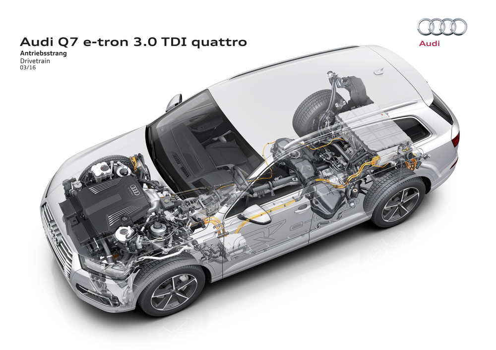 O Audi Q7 e-tron 3.0 TDI conta com um motor V6 TDI, tração integral, uma potência combinada de 373 Cv (258 cv motor de combustão + 128 cv do motor elétrico) e um binário máximo de 700 Nm. Acelera dos 0 aos 100 km / h em 6,2 segundos. Registos que inegavelmente nos colocam em sentido.