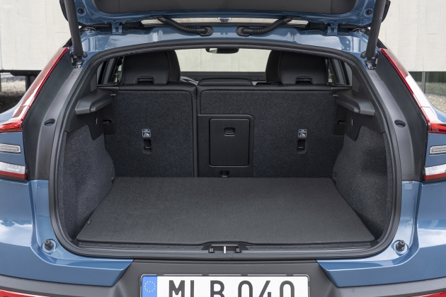 O exterior é onde o C40 se diferencia do seu irmão XC40 ao assumir uma silhueta coupé definida pelo ângulo da linha do tejadilho. Já no interior encontramos mais semelhanças, diferindo no design do tabliê e na utilização de materiais provenientes da reciclagem de rolhas de cortiça e garrafas de plástico com um feeling premium pela sensação ao toque. O espaço a bordo não é referencial no segmento, a causa é a utilização da plataforma CMA, que por uma questão de custos está pensada para receber também motores de combustão como é o caso do XC40. Os dois carros são montados na mesma linha de montagem, como pudemos comprovar na visita à fábrica em Ghent, na Bélgica. Ainda assim há espaço disponível para acolher quatro adultos muito confortavelmente, sendo o lugar do meio do banco de trás penalizado pela existência do túnel de transmissão reservado ao irmão XC40 que ainda monta um motor de combustão. A bagageira disponibiliza 480 litros e na frente ainda há um compartimento com mais 30 litros, onde se podem guardar os cabos de carregamento.