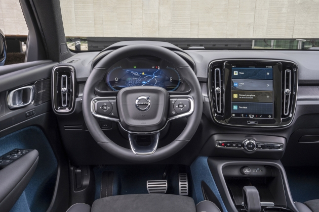 Os clientes de automóveis elétricos dão muita importância ao software, ao interface e à integração com o seu smartphone. A Volvo percebeu isso e deu aos clientes algo que estão habituadas a utilizar no seu dia a dia: um ecrã que replica o formato ao alto dos smartphones com um sistema operativo da Android específico para automóveis, onde até podemos instalar as apps que mais utilizamos. A integração com o smartphone é total e a experiência de utilização com o software de navegação Google Maps é das melhores do mercado. Dependendo dos mercados a Volvo disponibiliza ainda atualizações over the air e dados ilimitados.