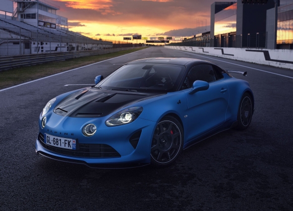 A marca trabalhou, assim, em torno de três pilares: aerodinâmica, chassis e leveza. No caso da aerodinâmica, a silhueta já de si bastante esguia do A110 foi aprimorada com uma série de elementos que melhoram a sua prestação, sobretudo em pista. Um dos exemplos é o aileron traseiro com pilares curvos, naquilo que na gíria se chama de ‘pescoço de cisne’ – a asa está posicionada em plano ligeiramente inclinado e com os suportes curvos.