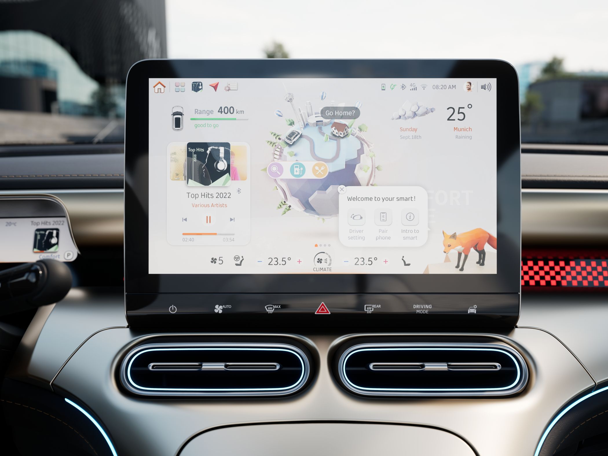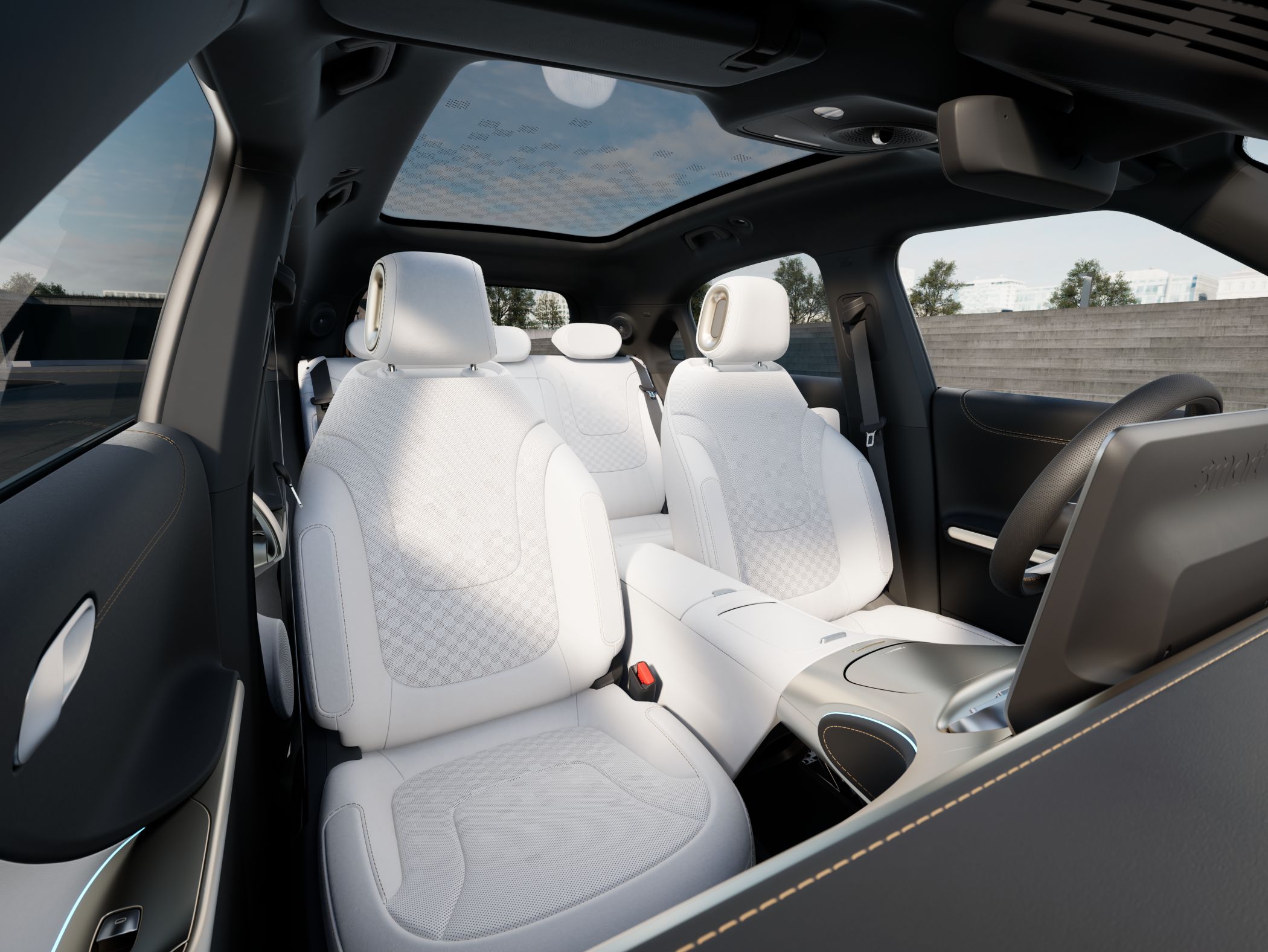 Algo que nos agradou bastante foi a conceção do sistema multimédia, cujo grafismo é uma lufada de ar fresco mesmo que seja sempre de gosto pessoal. A opção pela raposa como representação imagética do assistente pessoal também é interessante e, mesmo que tenha muitos menus para explorar, o manuseamento de todo o sistema não fará muita confusão aos amantes das novas tecnologias e dos smartphones de última geração. Que, em boa verdade, é o que é aquele sistema com um ecrã enorme de 12.8” situado em posição superior do tablier e com excelente visibilidade.A partir de comandos vocais, conseguimos abrir as janelas, ligar o ar condicionado ou abrir e fechar o teto de abrir panorâmico de grandes dimensões, com uma resposta bastante positiva. O sistema poderá ser atualizado por via remota e disporá de conectividade com os sistemas Apple CarPlay e Android Auto. Não faltam também alguns jogos para passar o tempo quando o veículo está parado.
