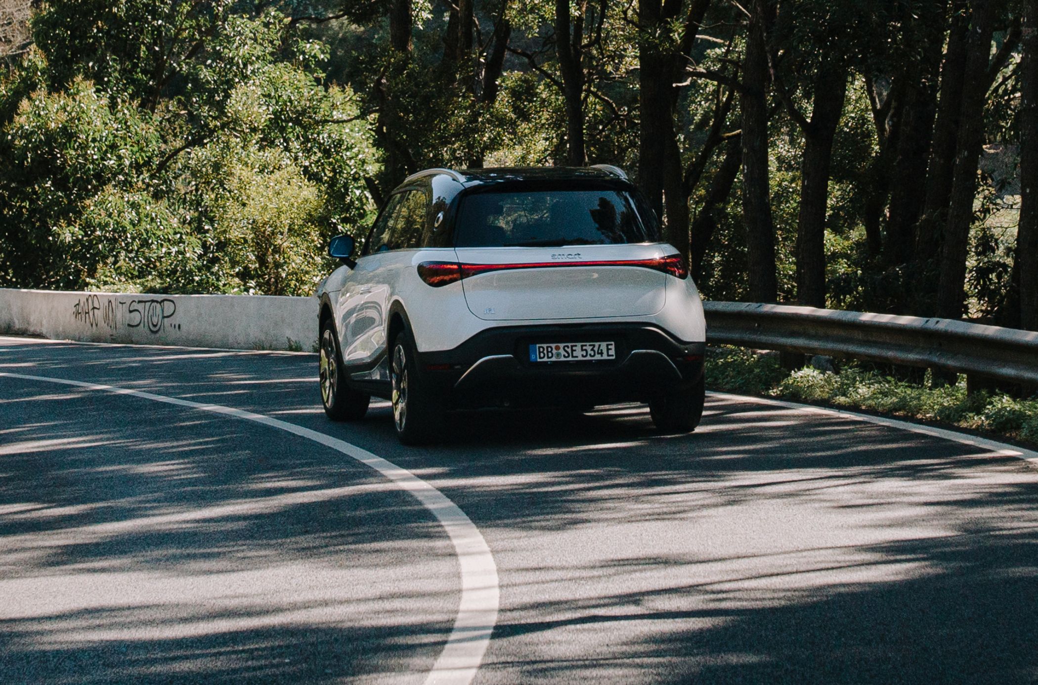 O botão de arranque não é necessário para este caso, tal como parece ser cada vez mais comum nos elétricos. Basta pressionar o travão e o #1 desperta para a vida. Como é apanágio deste tipo de automóveis, as respostas são bastante prontas, variando também a sua intensidade consoante o modo de condução selecionado: o ‘Eco’ é mais castrador das performances em prol da longevidade da carga da bateria, enquanto o ‘Sport’ aponta para uma utilização mais dinâmica com redução da assistência da direção e maior impulso ao pressionar-se o acelerador mesmo que a meio curso. Com 272 CV não é propriamente uma surpresa completa tamanho desafogo nas prestações, mas é uma grande diferença face ao que foi oferecido no passado pela marca.