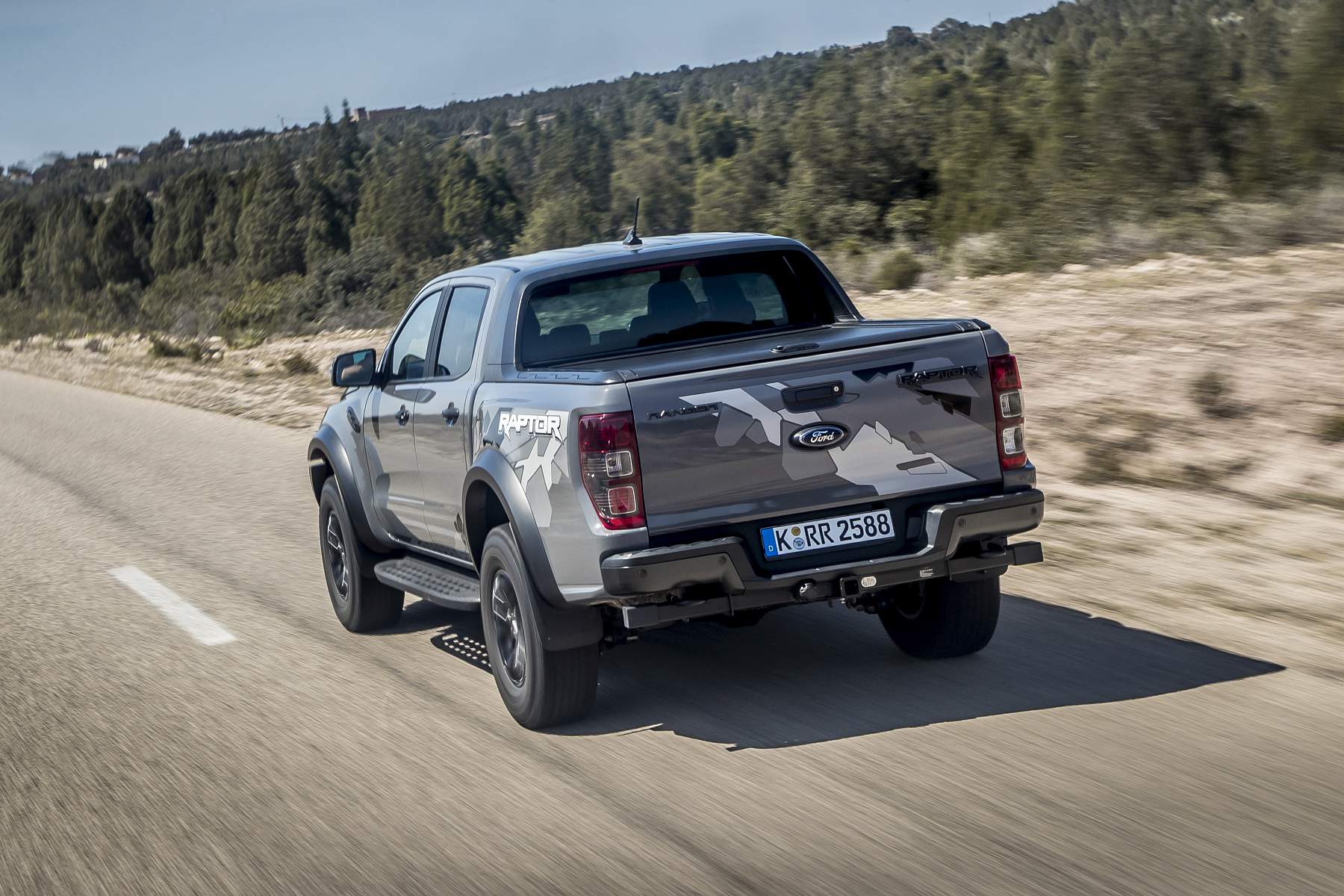A Raptor é a antítese dessa moda. Transpira agressividade e eficácia a cada ângulo de visão. A grelha frontal remete-nos para o universo da pick-up campeã de vendas nos EUA, a Ford F-150, que também tem a sua versão Raptor. Do lado de lá do grande lago, o caso é mais sério, com um V6 Turbo a gasolina e 400 CV sob o capot, mas esta Raptor europeia cumpre bem o papel de ‘next best thing‘. É o mais próximo que podemos chegar das grandes pick-up americanas, sem recorrer à importação direta.