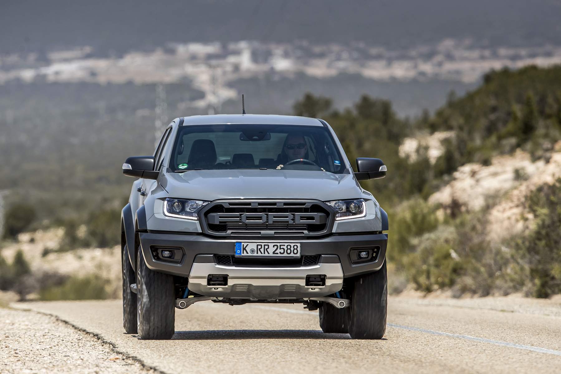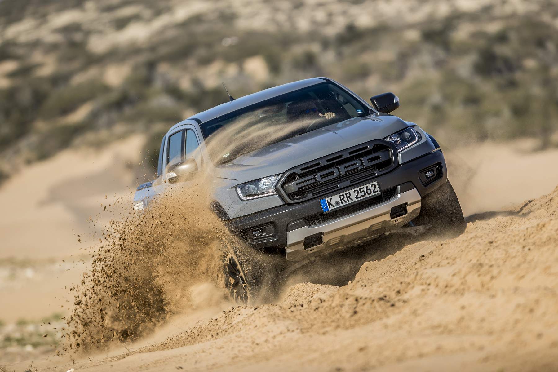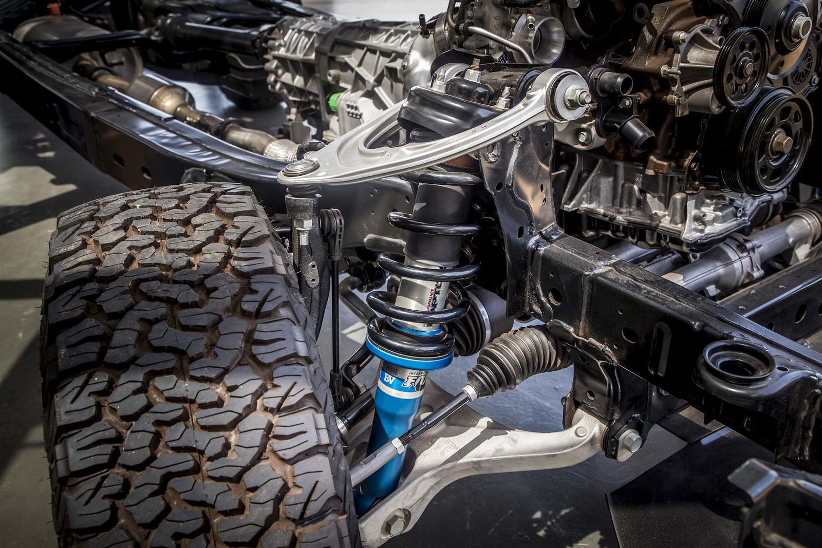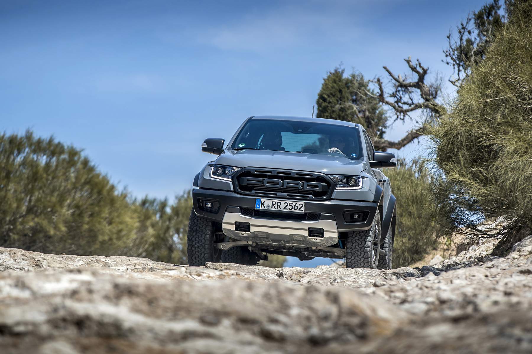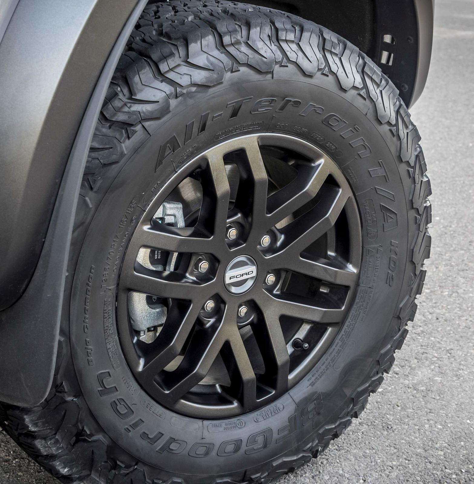 A Ford Ranger Raptor não engana ninguém. Não é preciso ler a ficha técnica, basta olhar com atenção. Ver a distância ao solo, as vias 15cm mais largas, espreitar para as cavas das rodas – jantes 17’’ com uns massivos BF Goodrich All-Terrain T/A KO2 de 33’’ – ver os triângulos de suspensão redesenhados e sobredimensionados, e imaginar o que podem fazer os conjuntos coil-over da Fox Racing. Uma suspensão de longo curso, inspirada na competição que é, provavelmente, o principal trunfo desta Raptor quando a levamos a passear por maus caminhos.