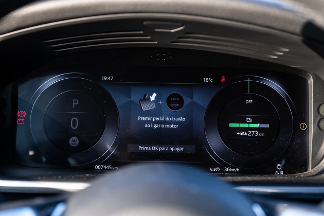 Dos 470 km de autonomia com 95% de carga da bateria, percorremos 361 km em auto-estrada, cidade e estrada nacional, chegando ao posto de carga rápido (50 kW) com a bateria nos 32%. A média de consumo fixou-se nos 25.3 kWh/100 km, que coincidiu com o valor máximo divulgado pela marca em ciclo combinado. Demorou cerca de uma hora até ficar completamente carregado e custou 10,53€ com um valor de 0,09€/minuto. O pagamento é feito com um cartão solicitado ao mesmo fornecedor de eletricidade de casa, sendo o custo imputado à fatura mensal.