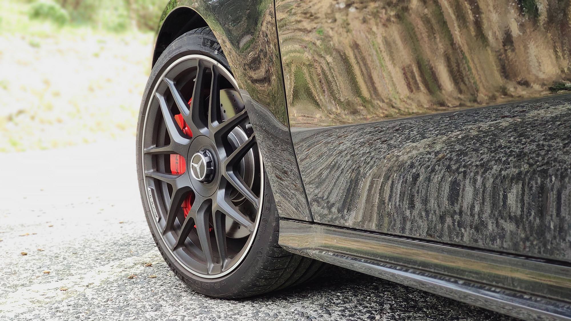 A travagem também não é menos impressionante, com mordaz sistema composto por discos de 360 mm de diâmetro na frente e de 330 mm atrás, com pinças de travão de 6 êmbolos em vermelho com letras negras AMG. A suspensão tem três níveis de firmeza para ajuste personalizado e merece ser equipada, tratando-se de opcional por 1250€.