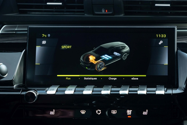 Ativando o modo desportivo de condução, liberta-se o ‘circo de feras’. Ou seja, os 360 CV e o binário de 520 Nm passa a estar disponível. É assim que este 508 PSE passa a assumir uma energia acima da média, sobressaindo sobretudo nas recuperações, com o binário elétrico a fazer este modelo ‘saltar’ literalmente para a frente, impulsionado pela força motriz. Chega a causar alguma estranheza a forma como, pisando o acelerador de forma decidida, galga km/h no velocímetro digital, valendo também a potência do sistema de travagem, que é bastante competente e praticamente imune a efeitos de regeneração de energia ou de amolecimento do pedal na primeira fase do seu curso.