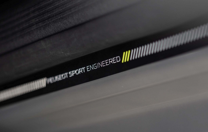 A ambição desportiva está ainda explanada no interior, ainda que de forma discreta, primando pelo bom gosto. O volante desportivo tem as três garras em verde fluorescente na parte inferior, havendo ainda ecrã tátil com ecrã específico para análise da performance, decorações nos painéis das portas e tablier e soleiras das portas específicas com a inscrição Peugeot Sport Engineered. Nunca é de mais reforçar…