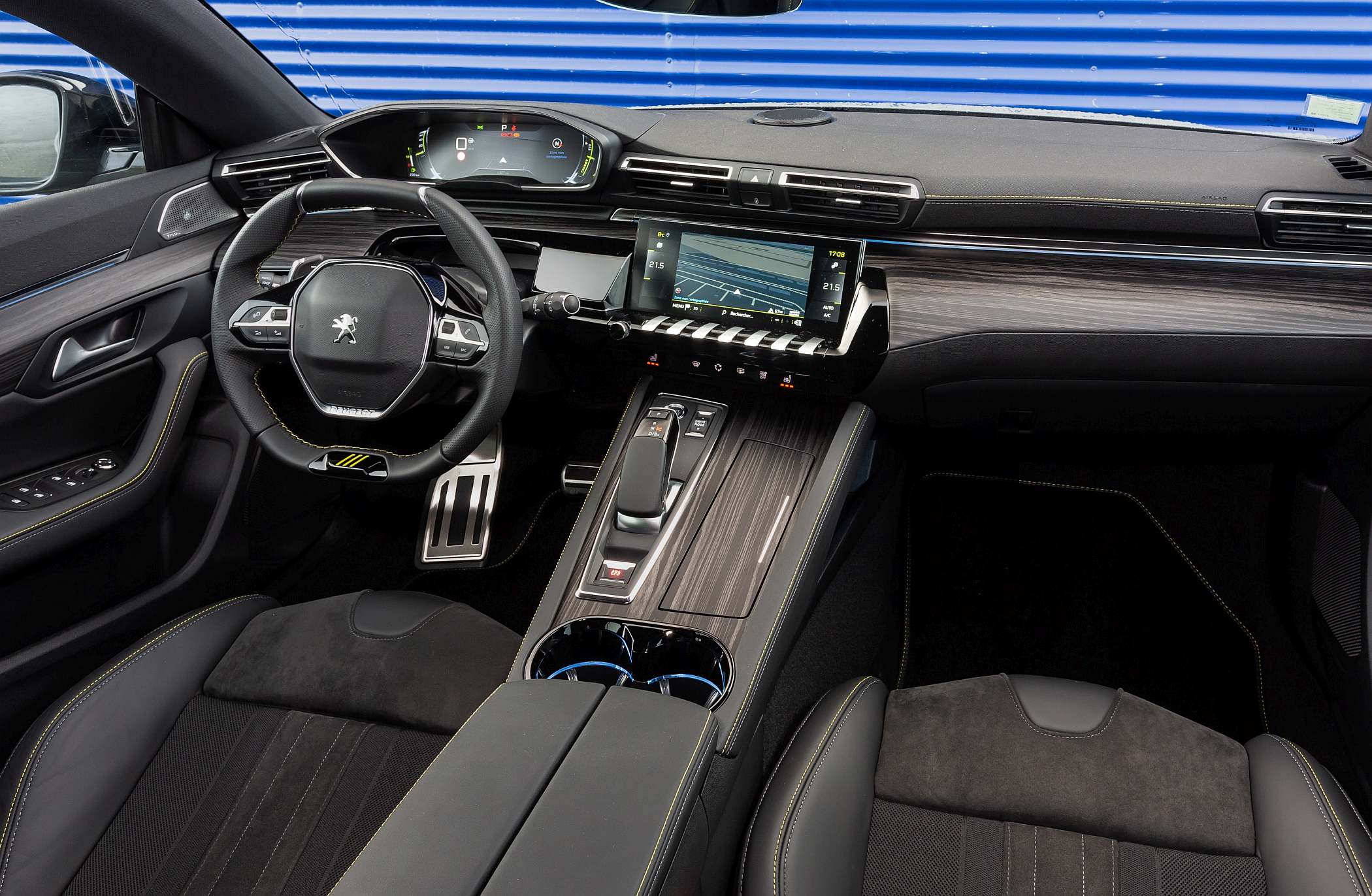 Os bancos desportivos têm revestimento em couro Mistral Nappa/Alcantara com ajuste elétrico e massagem incorporada, num detalhe que faz alusão ao facto de ter o equipamento mais completo de série de toda a gama do 508. Aliás, em termos de equipamento opcional há apenas duas escolhas possíveis – o carregador de bordo de 7.4 kW e o tejadilho panorâmico. Tudo o resto, incluindo o sistema de som Focal de alta qualidade e os pacotes de segurança, estão no equipamento de série.