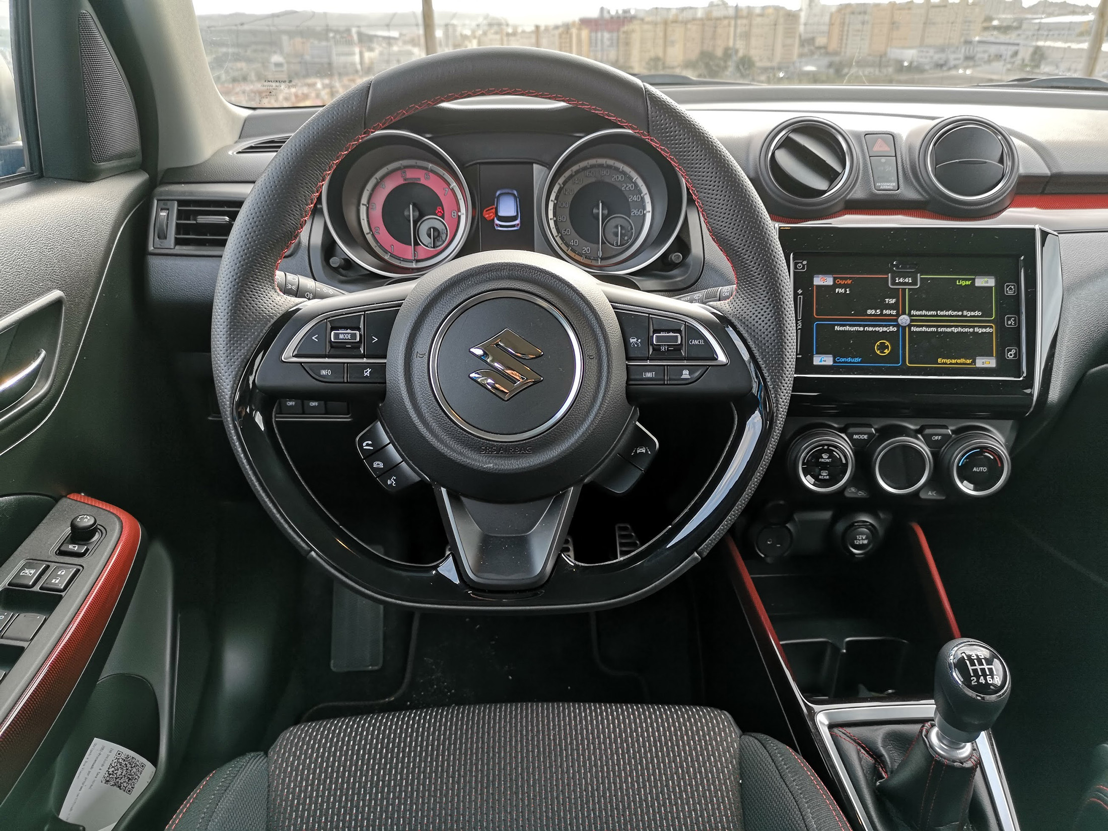 A última geração do Swift Sport está munida de um motor com quatro cilindros e 1400 cc turbo, a marca chama-lhe Boosterjet e produz 129 cv às 5500 rpm, menos 11 cv que a geração anterior. Entretanto, com as regras de emissões mais apertadas, a Suzuki equipou o novo Swift Sport com um sistema mild-hybrid 48 V, e o conjunto com a bateria de iões de lítio colocada debaixo do banco do passageiro da frente pesa agora 1020 kg – mesmo assim é mais leve do que a concorrência. O design agressivo não deixa ninguém indiferente. Naturalmente citadino, o Swift Sport sente-se como “peixe na água” a nadar no trânsito urbano e as suas pequenas dimensões facilitam na hora de procurar estacionamento.
