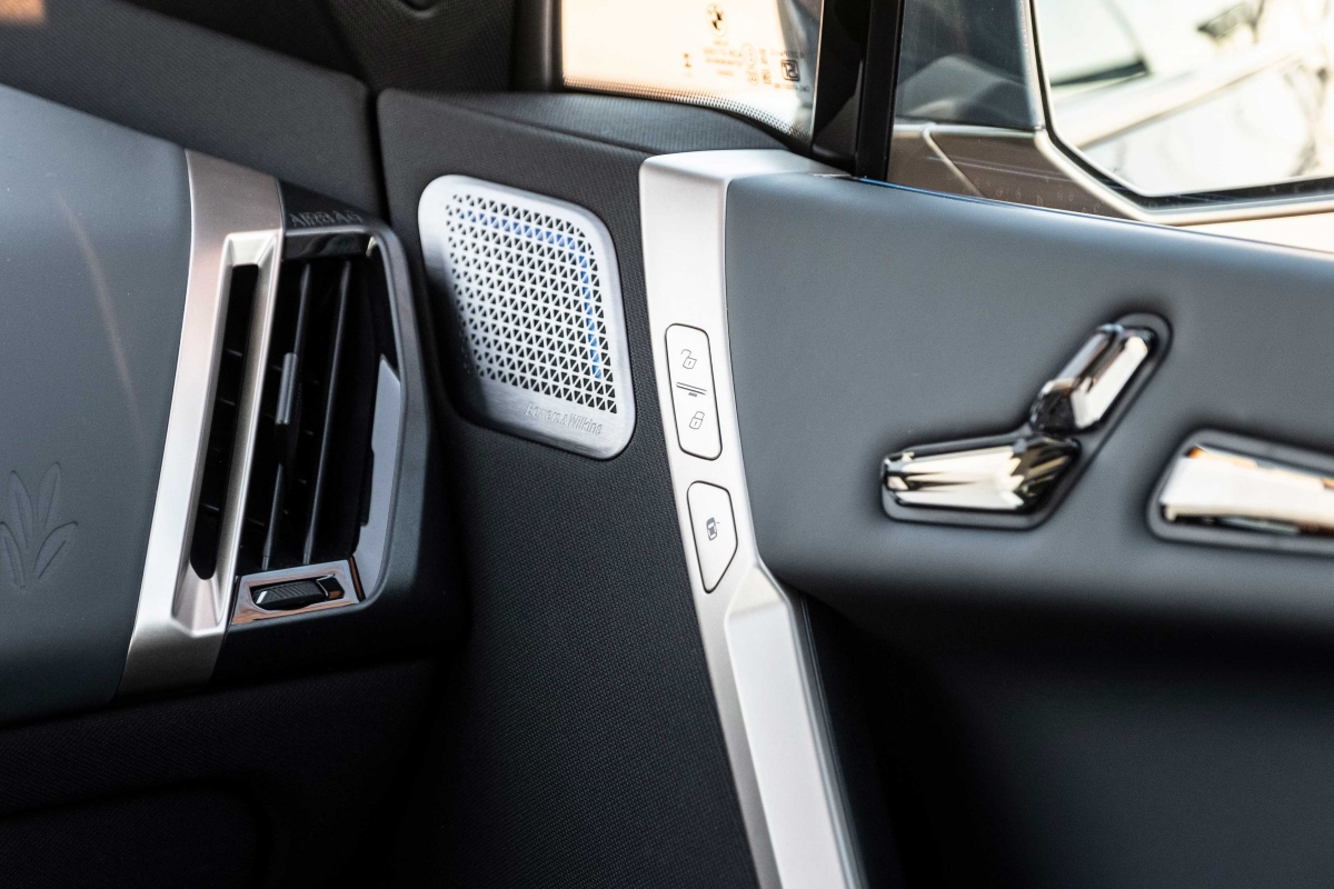 Sem grandes diferenças no exterior que identifiquem de imediato estarmos perante uma versão diferente do iX normal, a “denúncia” surge na forma de um pequeno emblema na traseira, onde se lê: iX M60. É verdade que temos também um para-choques com um grande difusor frontal, jantes de vinte e duas polegadas e pinças de travão azuis. Mas, tudo isso está disponível como opção na versão normal.