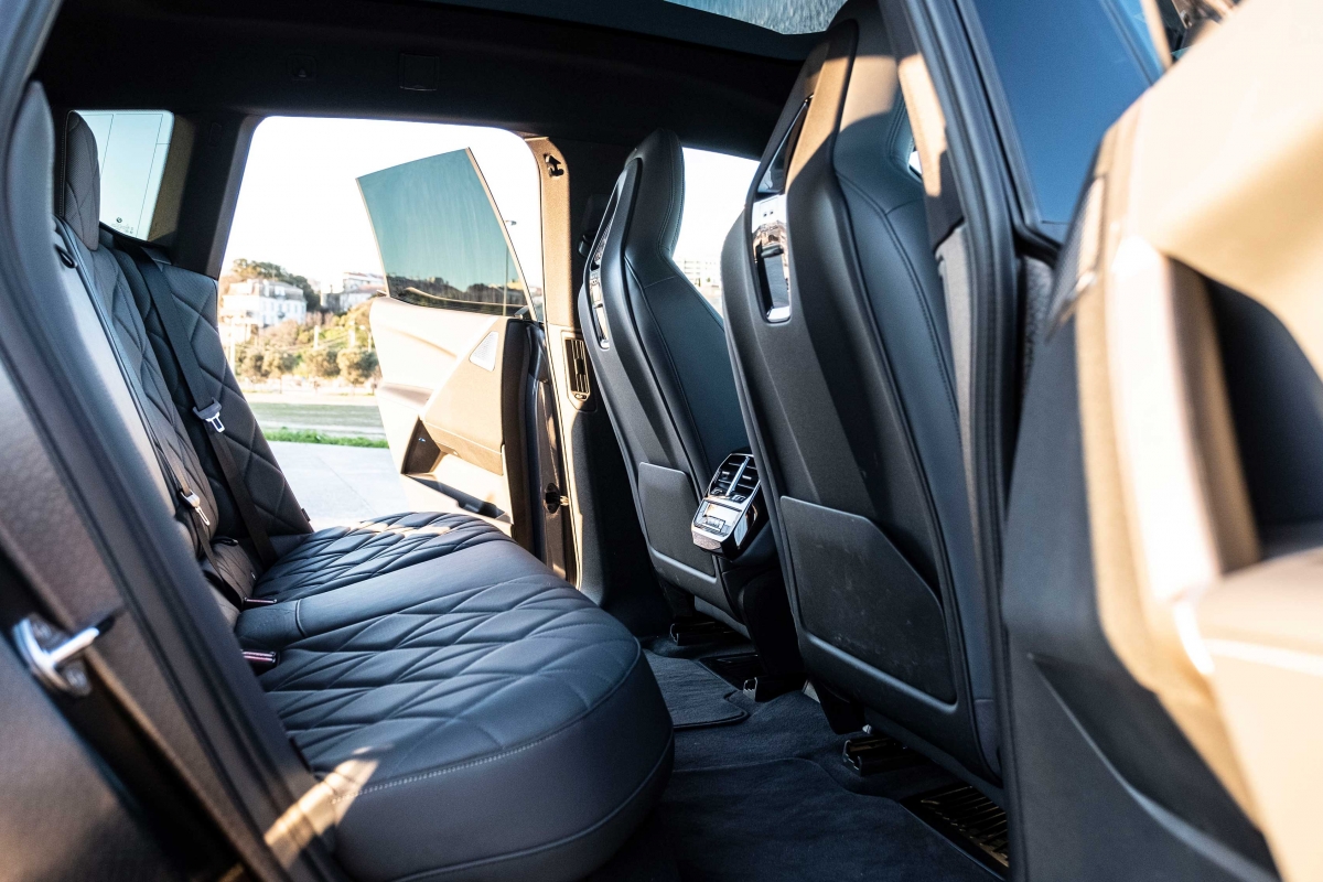 Quem se sentar nos bancos da frente tem tratamento VIP, com direito a massagem lombar e tudo. Além de poderem ser aquecidos ou refrigerados, contam ainda com realce dos graves através de vibração e altifalantes no encosto de cabeça, que fazem parte do sistema de som surround Bowers & Wilkins Diamond.