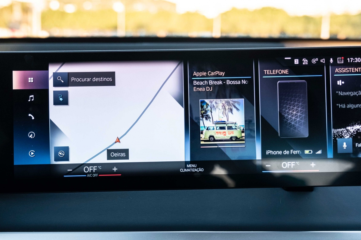 A BMW anuncia uma autonomia máxima de 561 km, mas o máximo que conseguimos sem preocupações com consumos foram 417 km, com uma média de 25,2 kWh/100 km. Aceita carregamento até 22 kW, numa wallbox com ligação trifásica, e 195 kW nos postos ultrarrápidos.