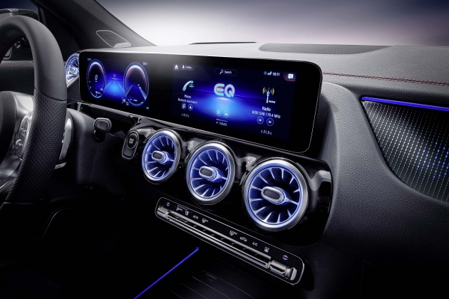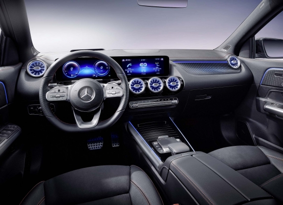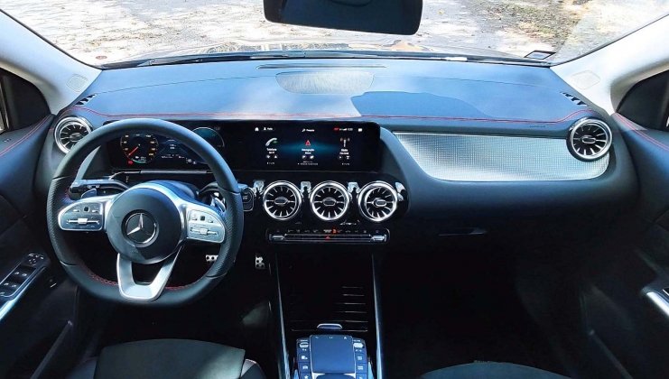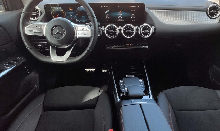 Tal como no EQA 250, apenas com um motor elétrico e tração dianteira, o EQA 350 4MATIC destaca-se pelo seu interior altamente evoluído com a dupla de ecrãs do MBUX a dominarem o ambiente. Configuráveis, nítidos e de fácil interação, os dois ecrãs surgem horizontalmente no tablier, com 10.25″ cada um, proporcionando um visão ‘widescreen’ que já é usual na marca. O ecrã central é tátil e serve para controlar uma grande série de sistemas do EQA, havendo ainda a possibilidade de se optar pelo comando vocal ‘Hey Mercedes’ para interagir nalguns parâmetros com o veículo, como pedir para ligar o aquecimento ou o ar condicionado.